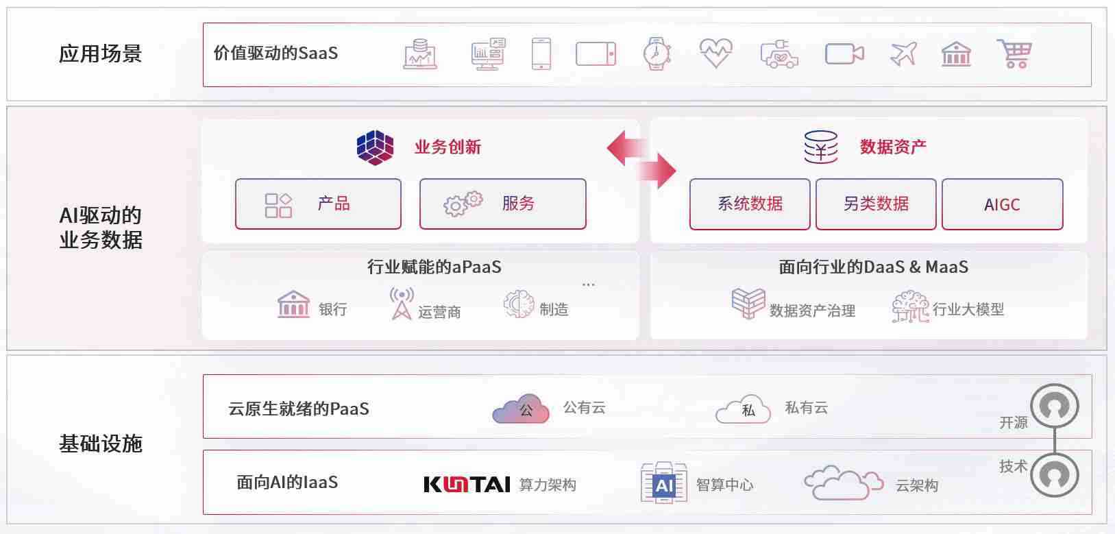 数字时代,,,围绕企业数字化转型的关键要素,,,98堂论坛数码开创性的提出数云融合战略和技术体系框架,,,着力在云原生、、数字原生、、、AI原生和信创产业上架构产品和服务能力,,为处在不同数字化转型阶段的快消零售、、、汽车、、金融、、医疗、、、、政企、、教育、、运营商等行业客户提供泛在的敏捷IT能力和融合的数据驱动能力,,构建跨界融合创新的数字业务场景和新业务模式,,,助力企业级客户建立面向未来的核心能力和竞争优势,,全面推动社会的数字化、、智能化转型升级。。